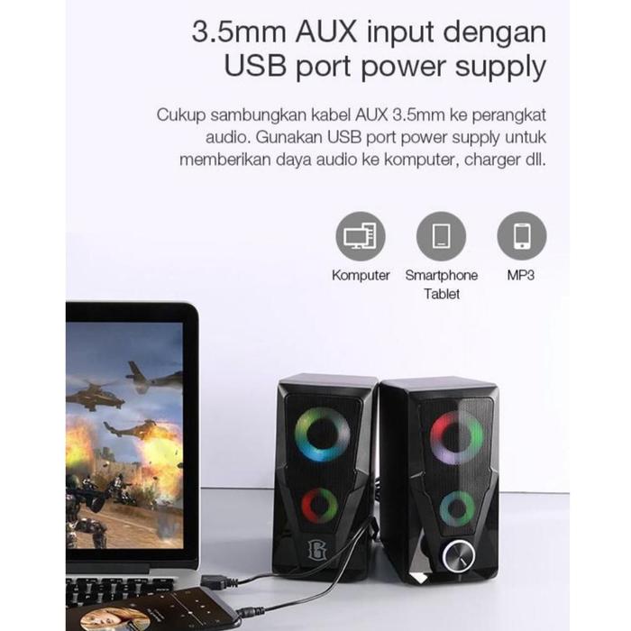 Robot Rs200 Gaming Speaker Aktif Pc Computer Laptop With Aux 3.5Mm