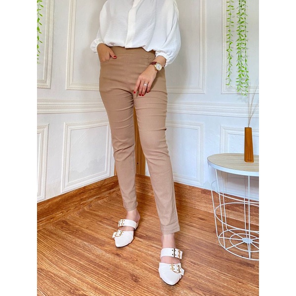 Office Pants Bahan Soft Jeans Strecht Melar Premium Celana Kerja Kantor Wanita Nyaman Panjang