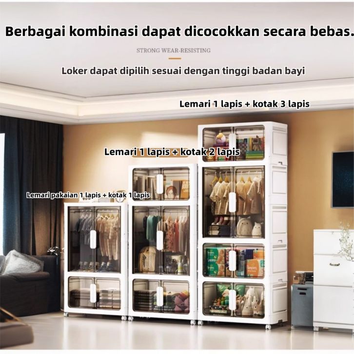 ORG Lemari Pakaian Plastik Lipat Lemari 80CM Multifungsi Tanpa Dirakit Lemari Pakaian Penyimpanan Lipat Serbaguna