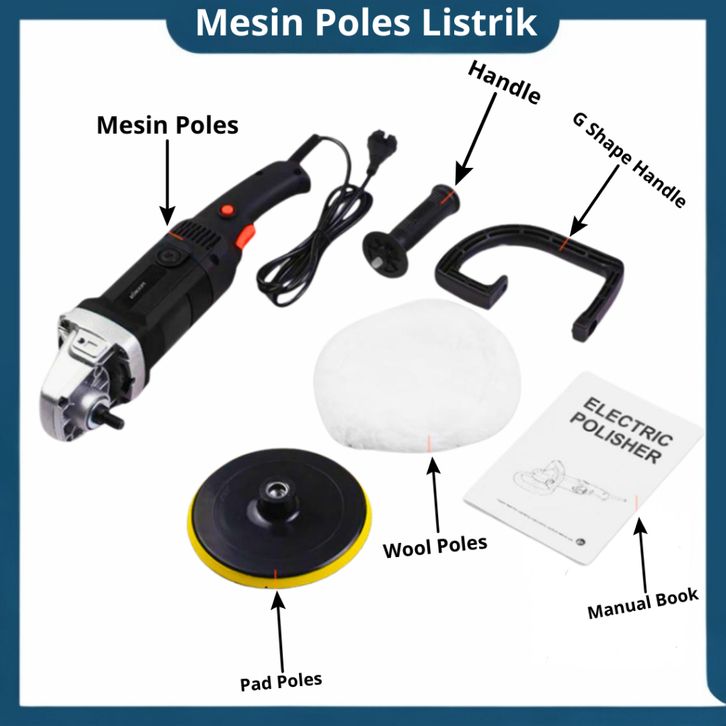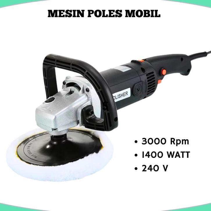 Mesin Poles Body Mobil 7"Inch 1400 Watt / Polisher Elektrik - BLACK 180MM 7Inchi