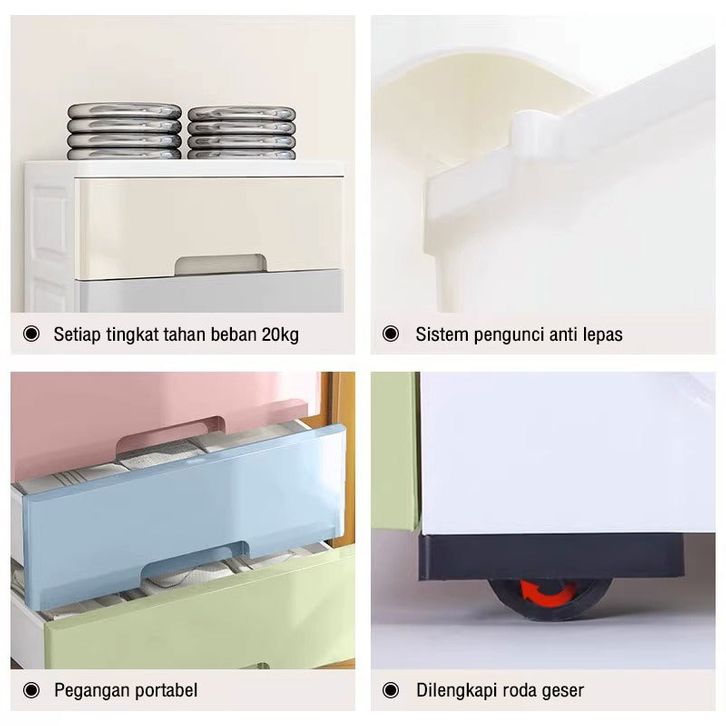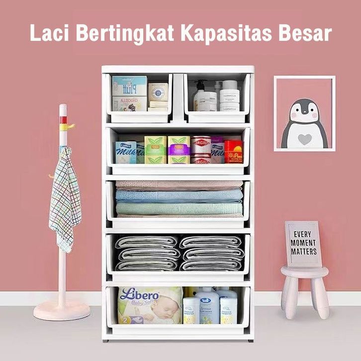 RAPIHOME Lemari Laci Plastik Lemari Laci Penyimpanan 3/4/5/6/7 Tingkat Kabinet Drawer Storage Cabinet 【35-48cm】Lemari