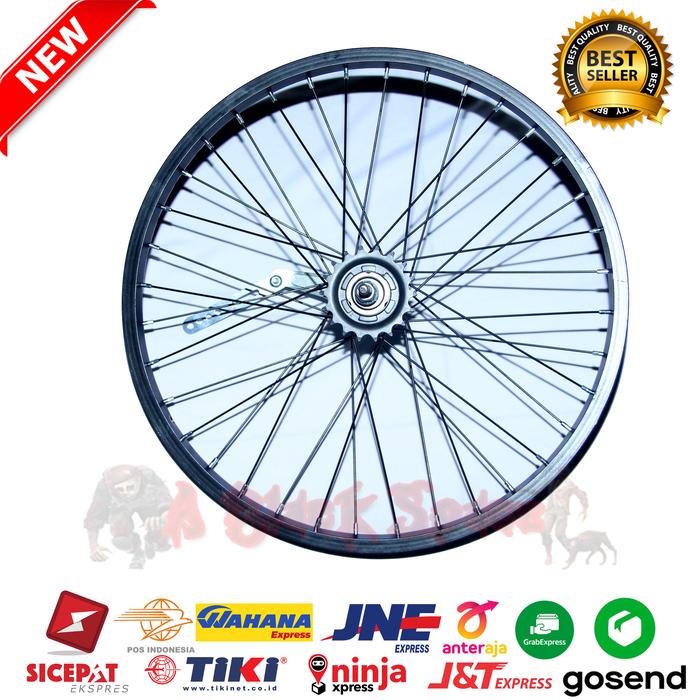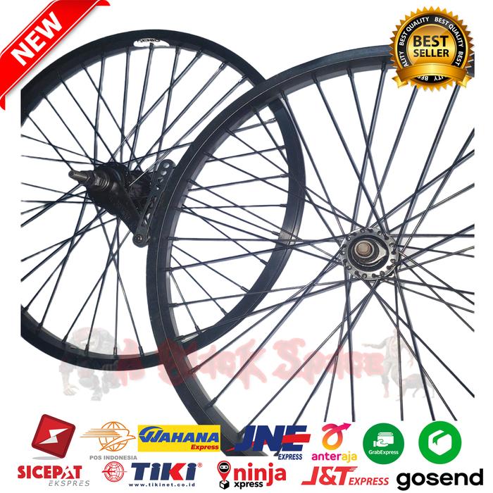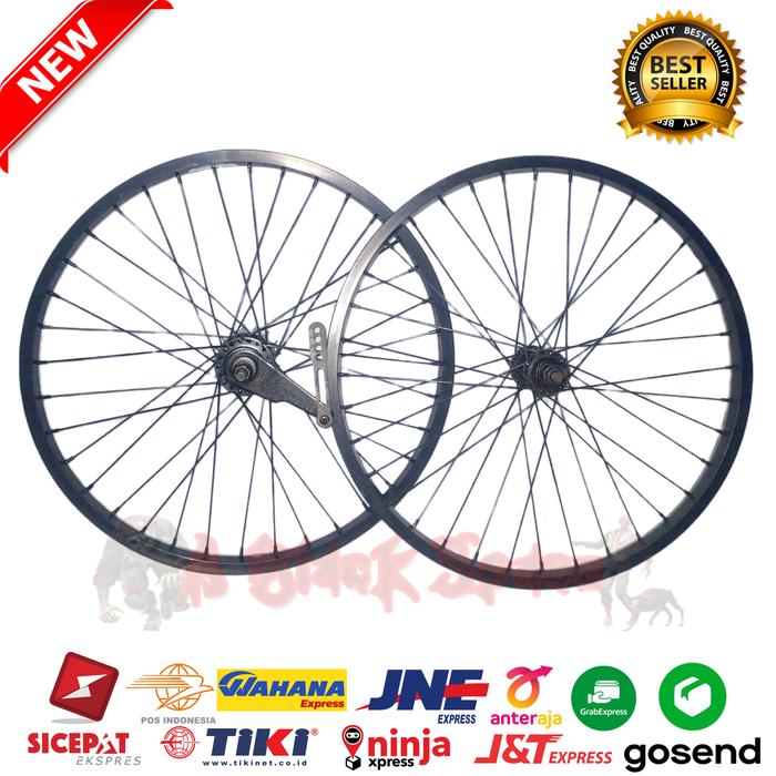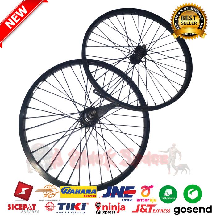 Paket Wheelset Sepeda Bmx 20 Inch Belakang Rem Terpedo Velg Rims Roda - Depan, Hitam