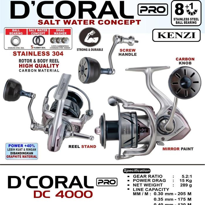 Kenzi D’coral & D’Coral PRO SW Reel Pancing Kapasitas 1000 2000 3000 4000 5000 6000 - 1000