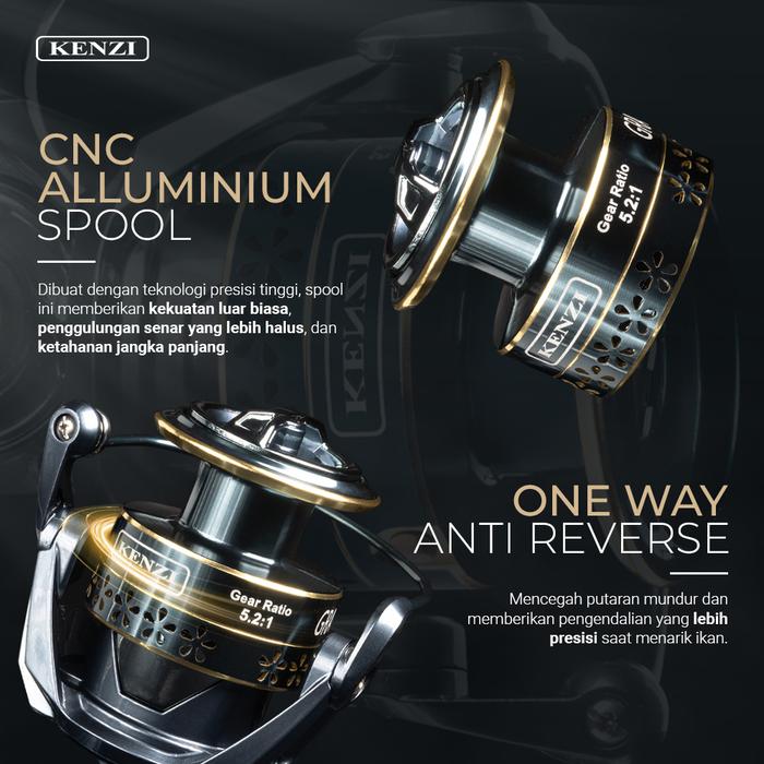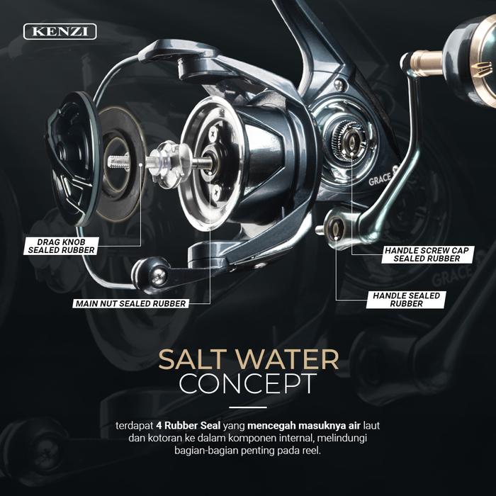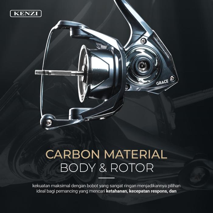 Reel Kenzi Grace SW dengan Stand Reel dan Material Tubuh Karbon, Pegangan Power Handle One Piece Knob 3000 4000 - 2000