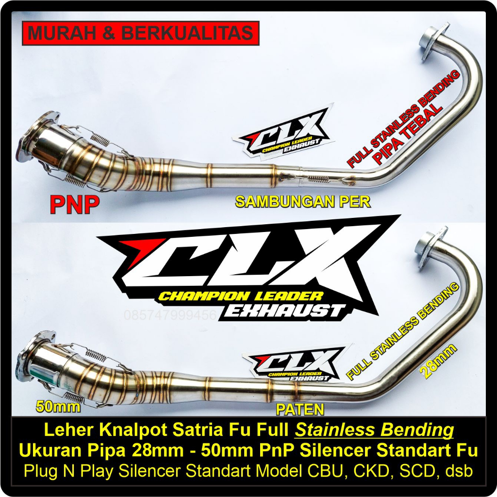 LEHER KNALPOT SATRIA FU 150 PNP SILENCER STANDAR FU FULL STAINLESS.Leheran Pipa Header Kenalpot FU Stenlis Bending + Adaptor. Terlaris