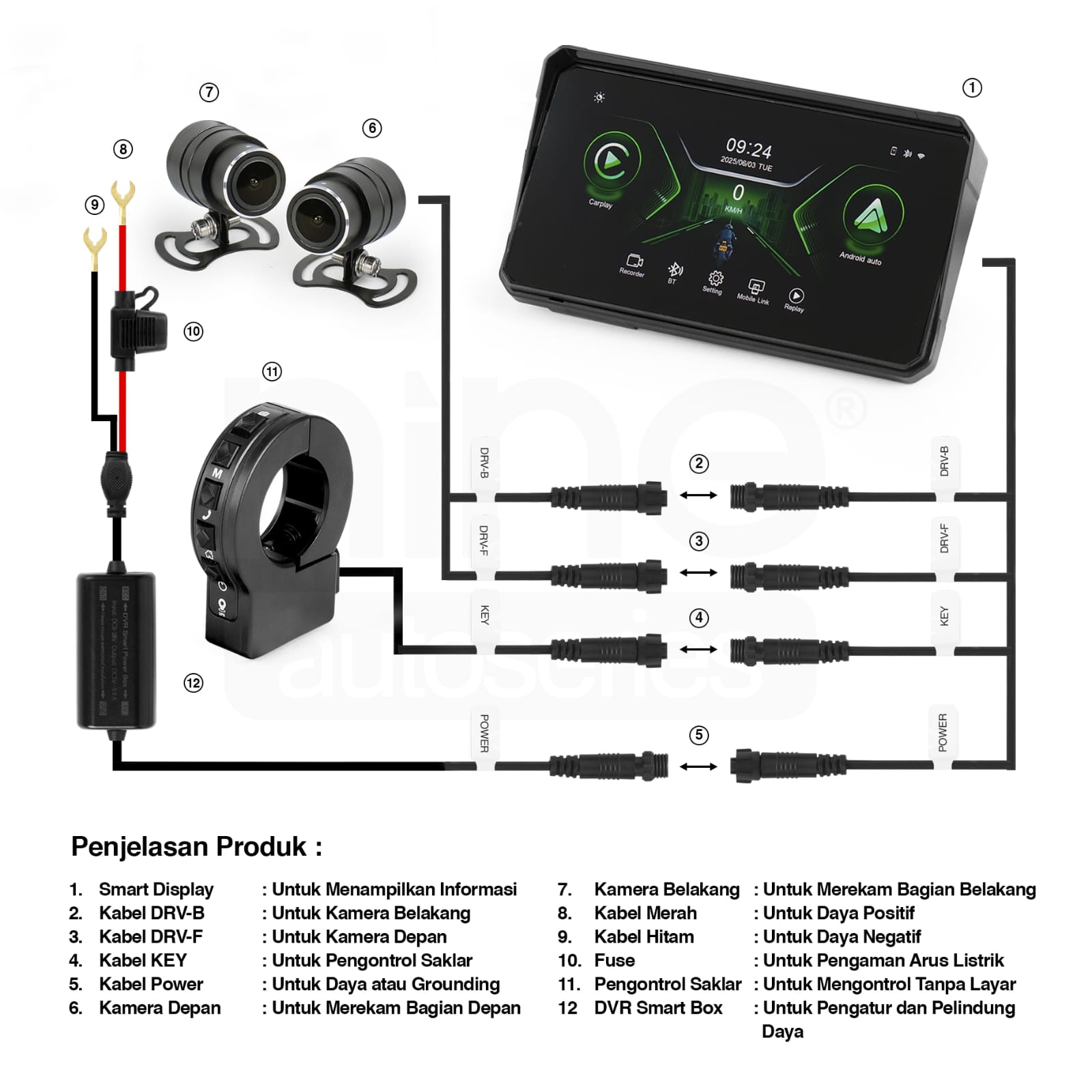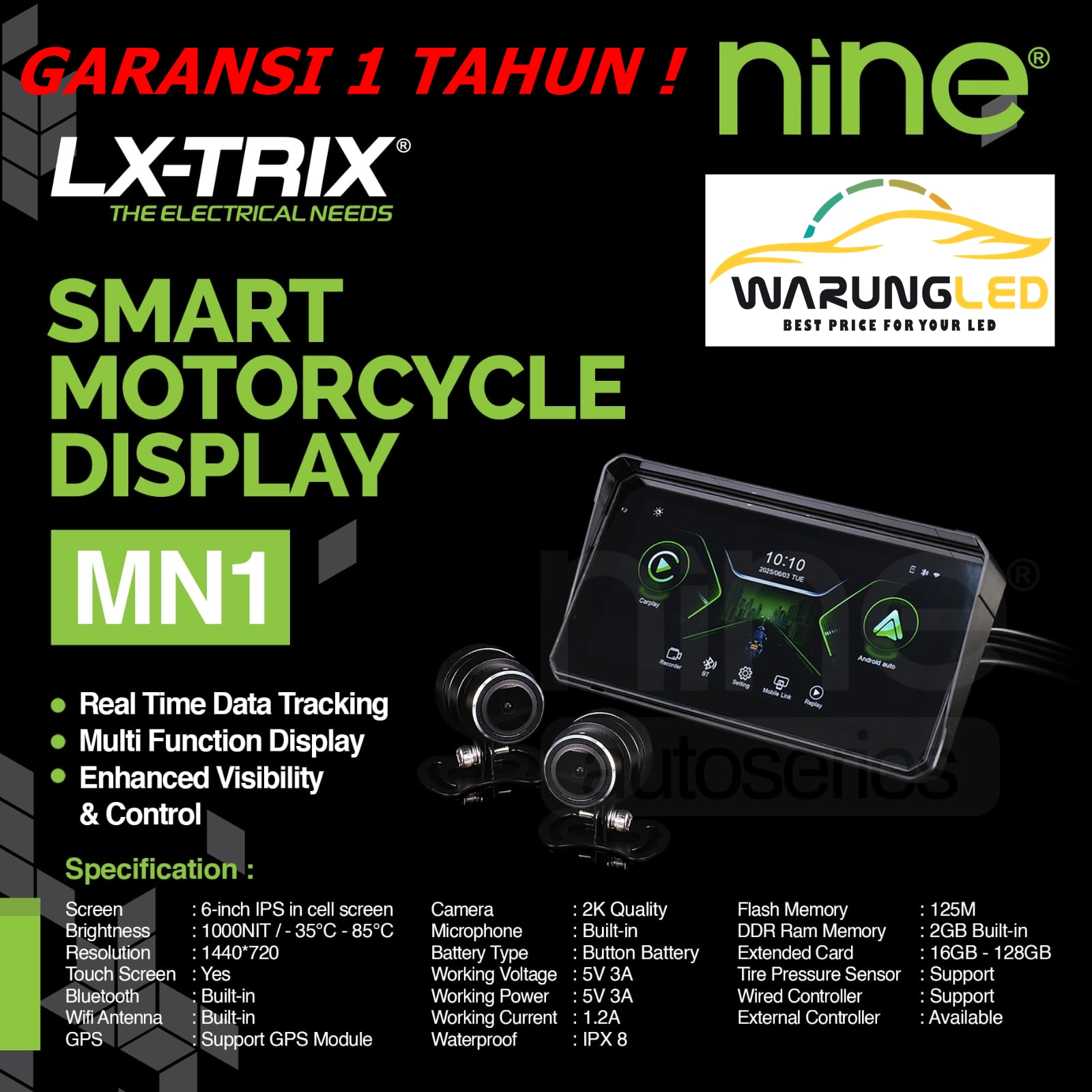 Nine LX-TRIX MN1 Smart Motorcycle Display | Layar Motor 6 Inch IPS | GPS + Kamera 2K | Waterproof IPX8 ANDROID AUTO LAYA