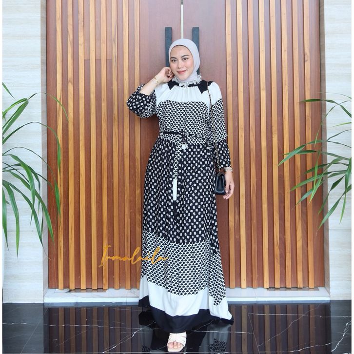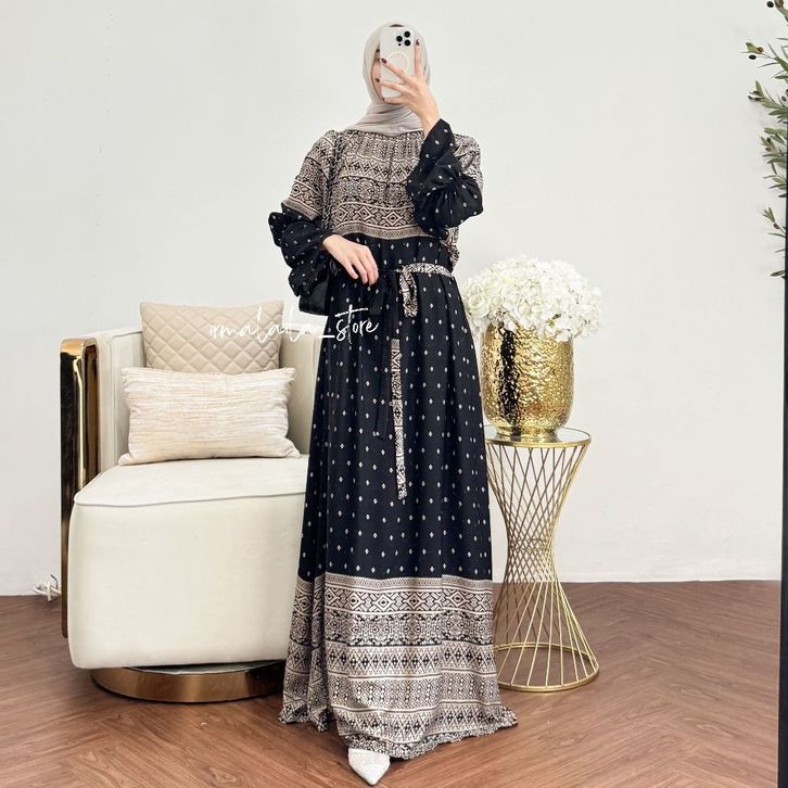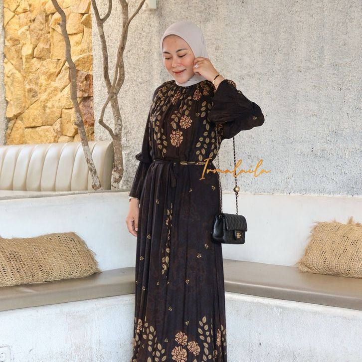 Dress Gamis Wanita Bahan Rayon Motif Adem Cantik Simple Elegan Nyaman Daily Bumil & Busui Friendly