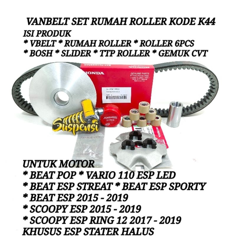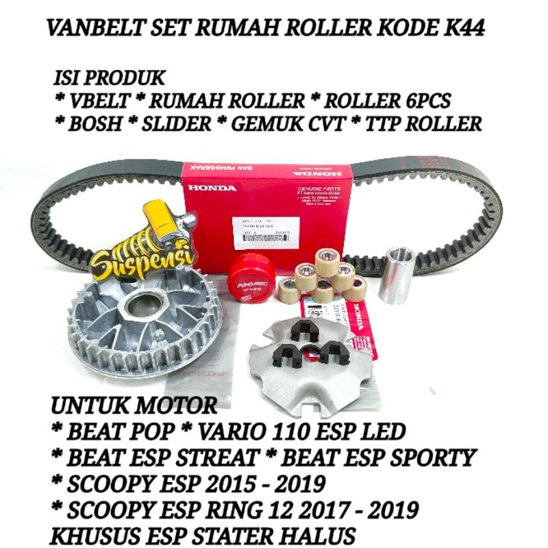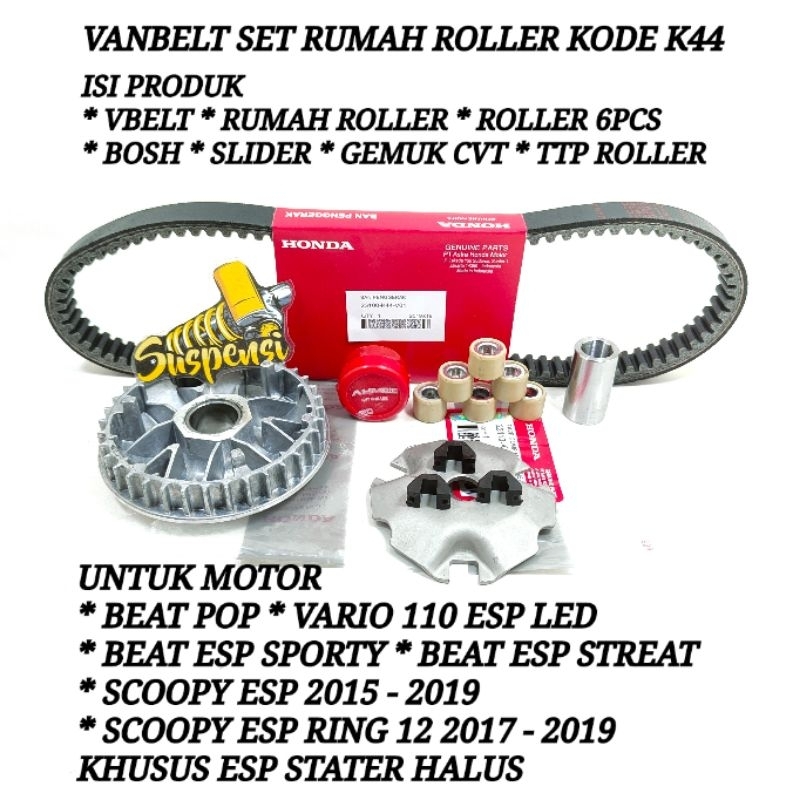 FREE ONGKIR Paket Van Belt cvt + Rumah Roller Set + Kipas Roller Beat Pop Beat Fi Esp Vario Fi stater halus k44