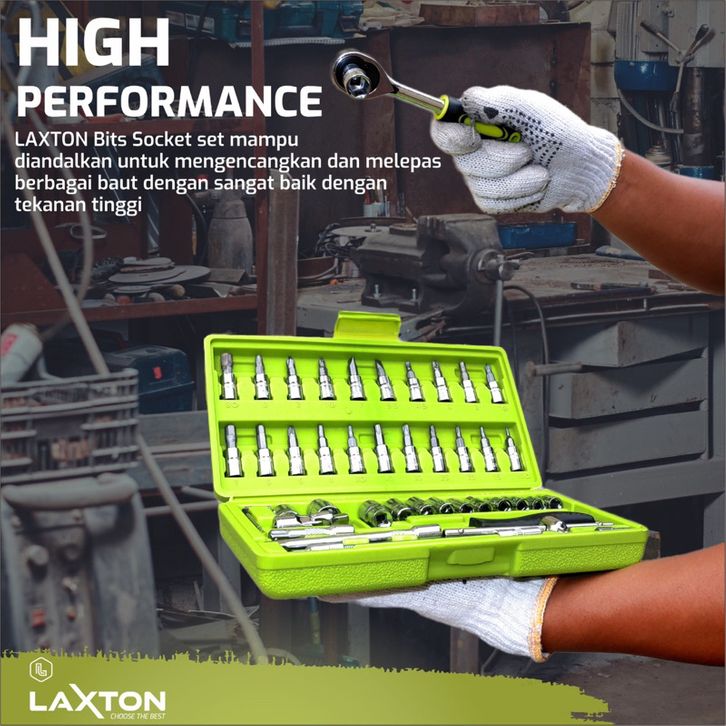 LAXTON kunci sok shock set motor socket 46 pcs L03-046 MURAH LARIS