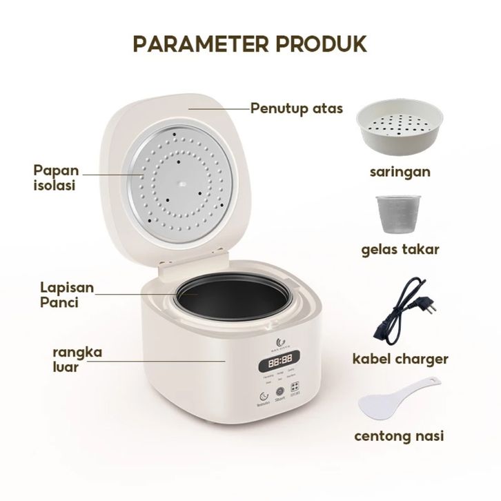 Rice Cooker 1.2L Magic Com Touch Screen Smart 400 watt Penanak Nasi HAN RIVER Anti Lengket