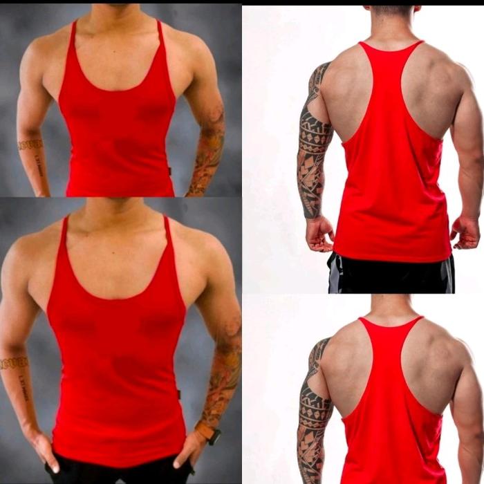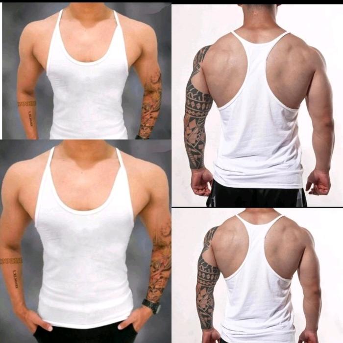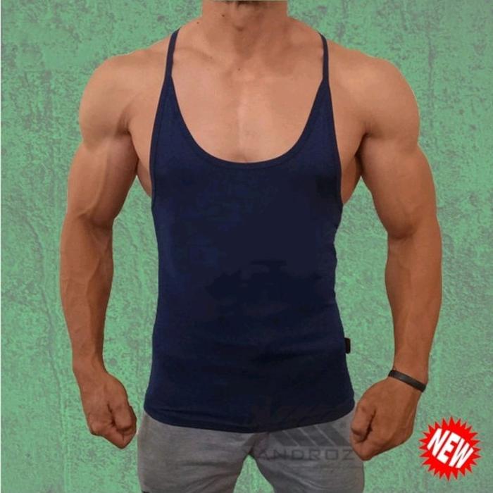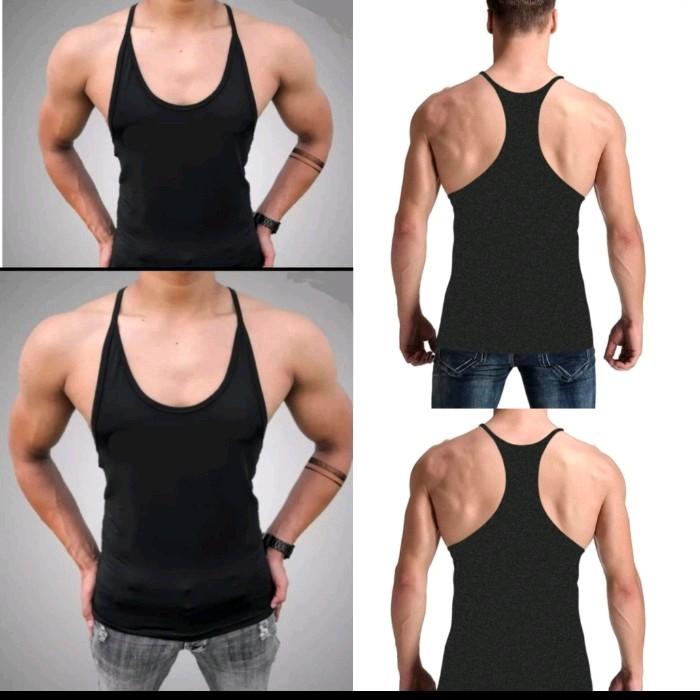 SINGLET TANKTOP PRIA POLOS OLAHRAGA FITNES GYM TALI KECIL PRIA OUTDOOR SPORT - HITAM, M (60KG-65KG)