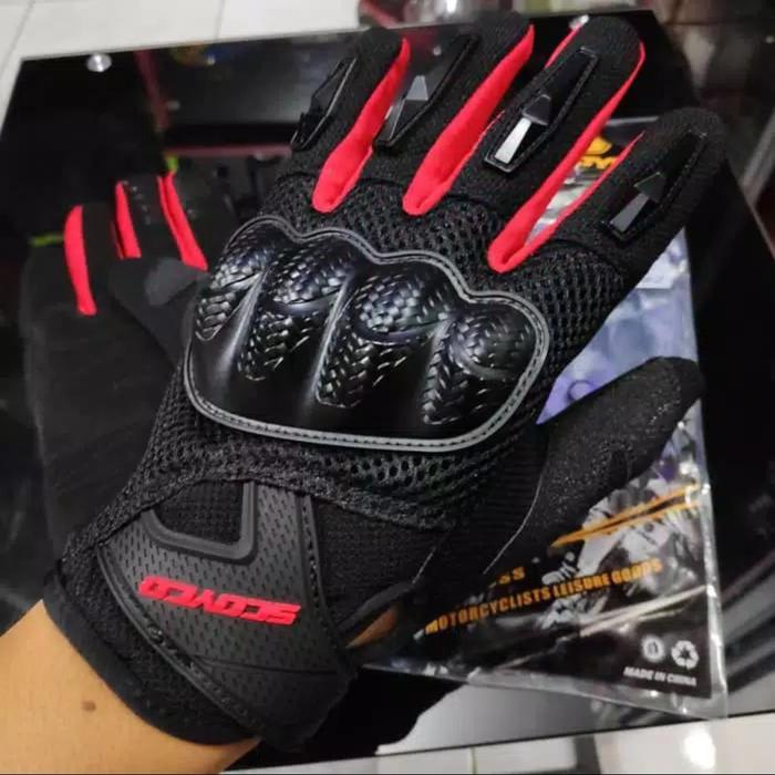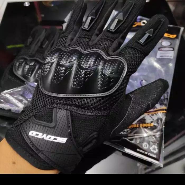 SCOYCO SARUNG TANGAN MC58-2 HITAM M L XL UNTUK SEPEDA MOTOR DENGAN PROTECTOR PLASTIK N LAYAR SENTUH SMARTPHONE BAHAN KAIN - HITAM, M