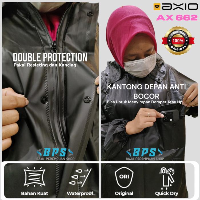 JAS HUJAN AXIO 662 ORIGINAL KARET RUBBER/SETELAN MANTEL MANTOL UJAN - HITAM, XXL (2XL)