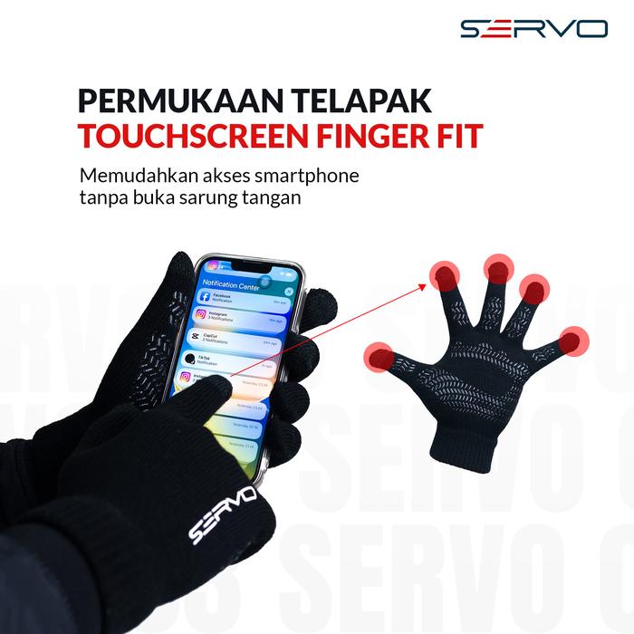 SARUNG TANGAN MOTOR RAJUT ANTI SLIP SERVO 03 POINT DENGAN TOUCHSCREEN TERBAIK - BLACK
