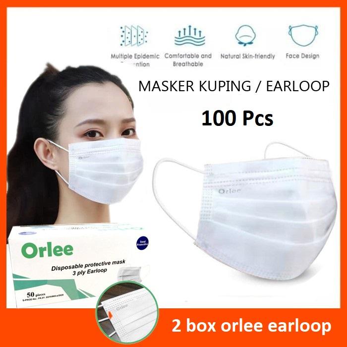 MASKER EARLOOP KUPING 3 PLY 3PLY KEMENKES ORLEE BUNDLING 2 BOX 100PCS - 2BEARLOOPBIRU