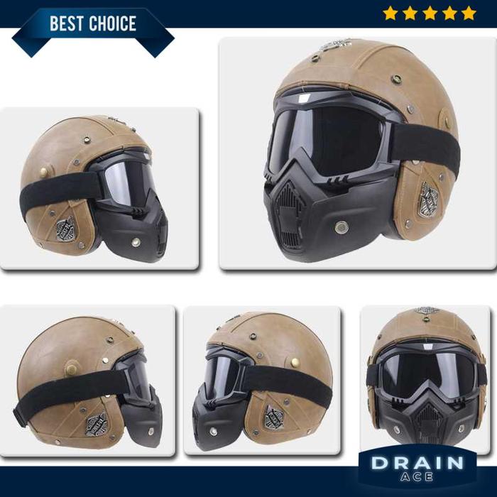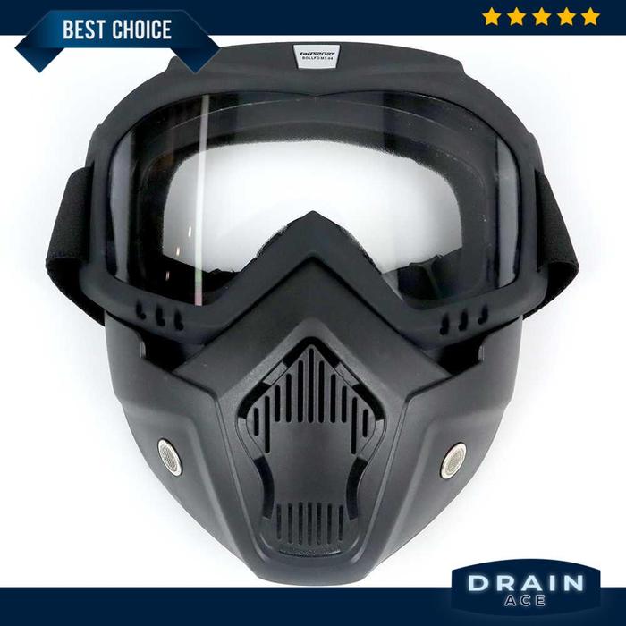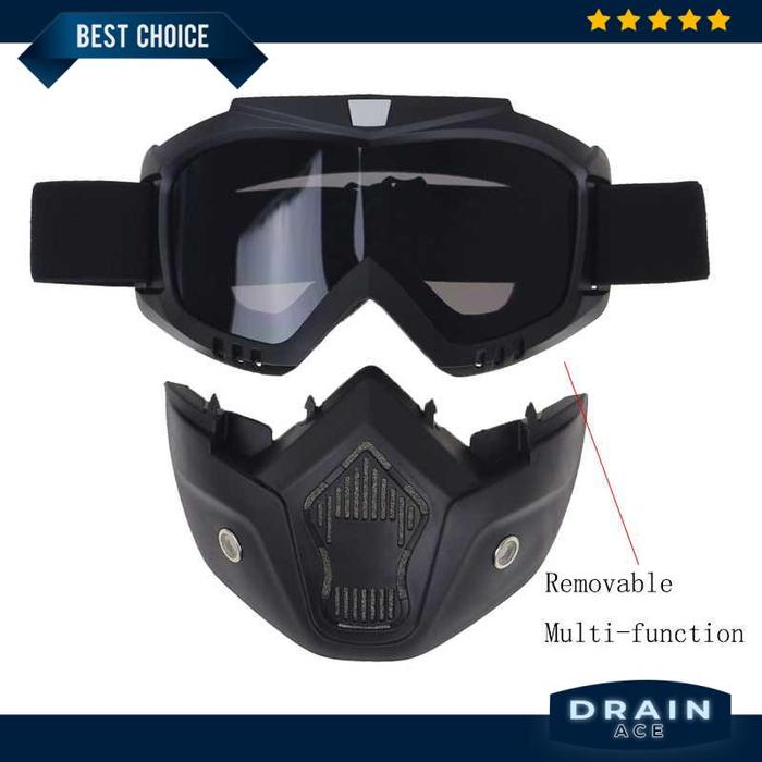 KACAMATA GOGGLES MASK MOTOR RETRO WINDPROOF HELM MOTORCYCLE - HITAM/TRANSPARAN