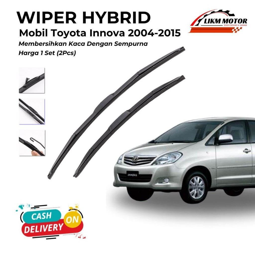 Wiper Hybrid Toyota Innova 2004-2015 Blade 1 Set Kiri dan Kanan Sepasang Pembersih Kaca Depan Mobil