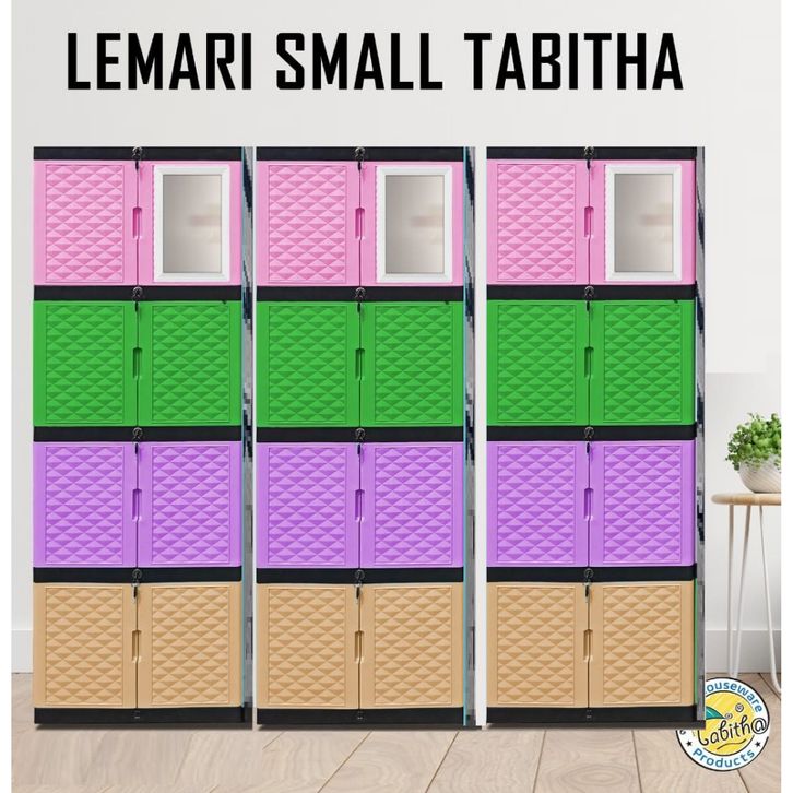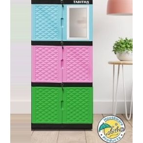 Lemari Pakaian Baju Plastik Tabitha Body Hitam - KACA CERMIN FULL KUNCI