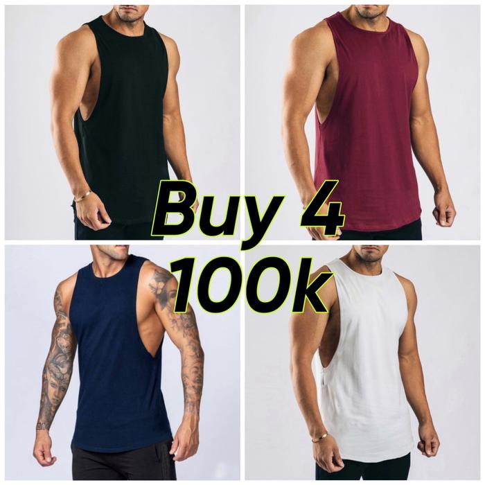 ( BUNDLING KAOS SINGLET GYM ) LOWCUT SINGLET GYM PRIA / KAOS OLAHRAGA FITNESS TRAINING - DAPAT 4 PCS ( ALLSIZE M FIT L)