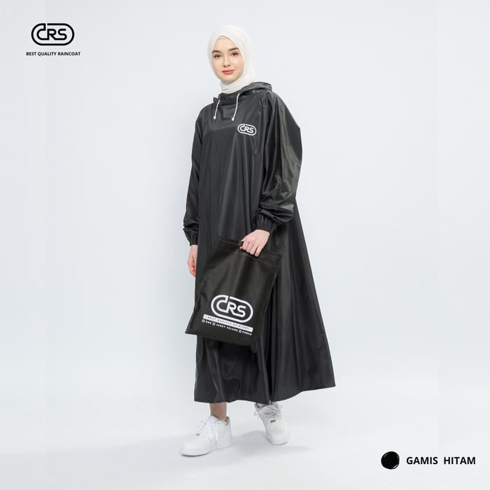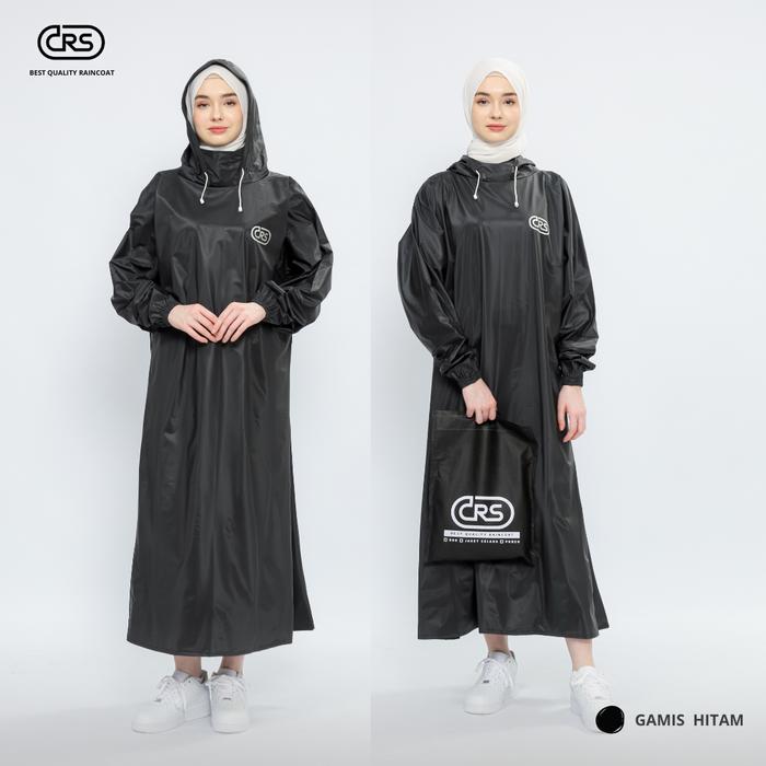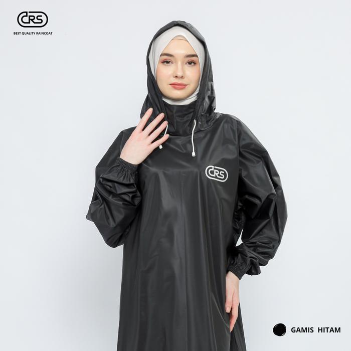 CRS JAS HUJAN GAMIS WANITA TERBAIK ANTI REMBES PVC RUST-PROOF RAINCOATS - HITAM, L (50-60 KG)