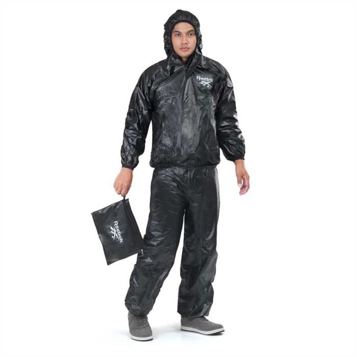 SETELAN JAS HUJAN REEBOK RAINCOAT PVC ANTI BOCOR - HITAM