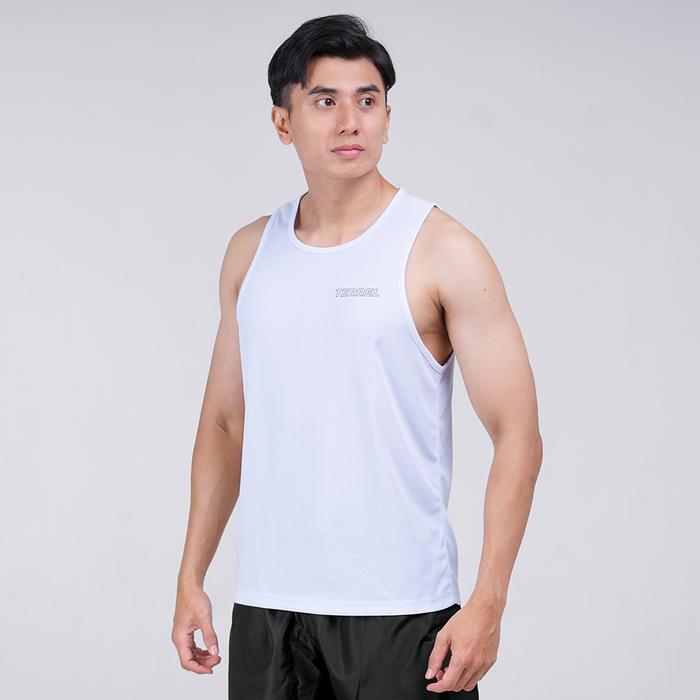 TERREL SPORTSWEAR BASIC TANKTOP WHITE SLEEVELESS SINGLET PRIA DRY FIT GYM RUNNING PRIA PAKAIAN OUTDOOR - S