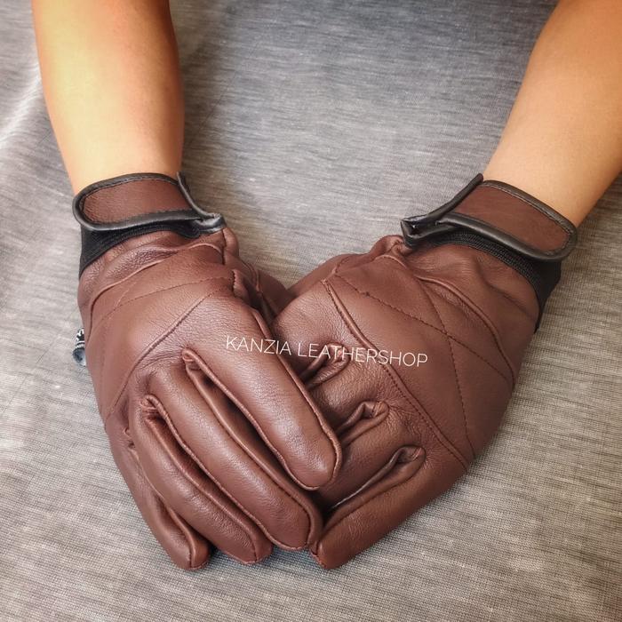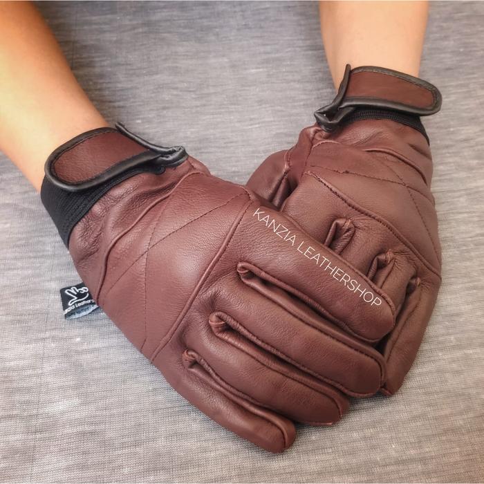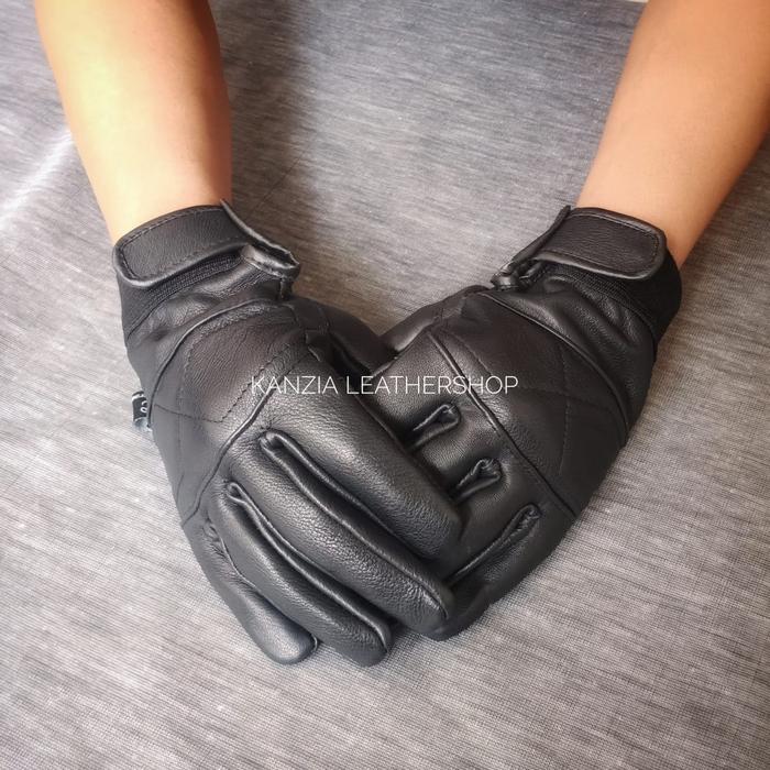 SARUNG TANGAN MOTOR KULIT ASLI HRB - HITAM