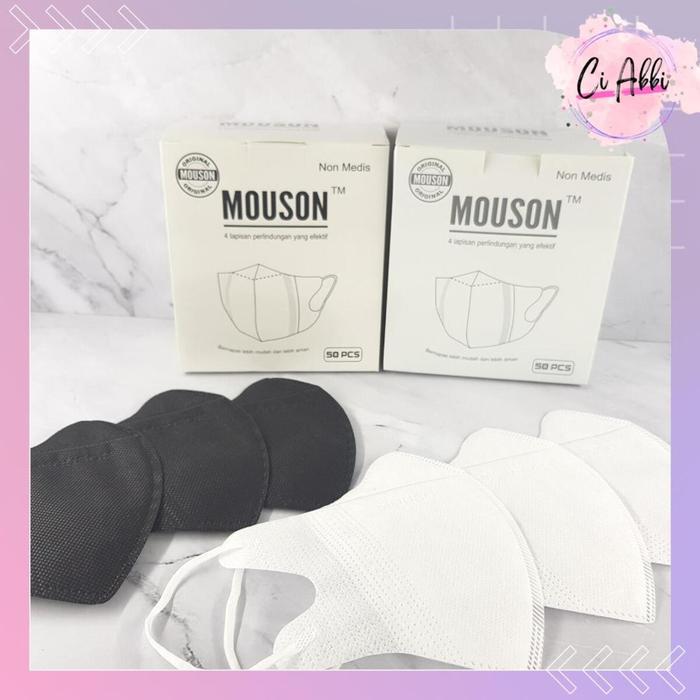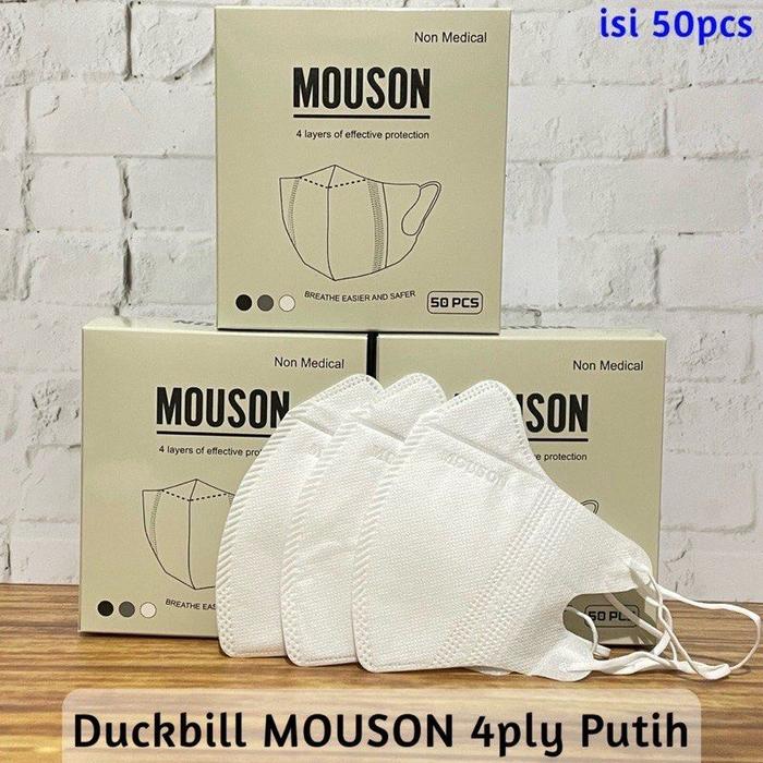 CIABBI MASKER DUCKBILL DUCK BIL MOUSON 4PLY 4 PLY TEBAL WARNA HITAM PUTIH POLOS DISPOSABLE MASK UKURAN DEWASA ISI 50 PCS 1028 - MOUSON MIX WARNA
