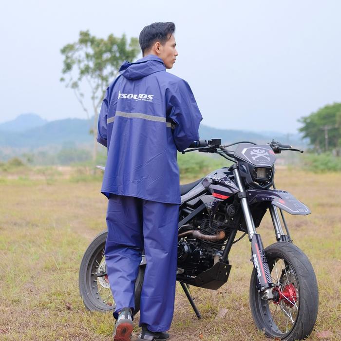 SOLIDS JAS HUJAN PRIA WANITA MANTEL HUJAN DEWASA JUMBO BIGSIZE PVC - BLACK CREAM, JUMBO XXL- XXXL