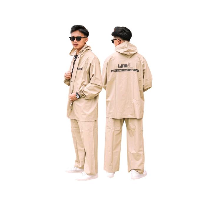 JAS HUJAN LINDY STELAN PRIA WANITA PVC DAPAT DIGUNAKAN KEMBALI TAHAN AIR SEPEDA MOTOR DAPAT DIGUNAKAN KEMBALI SEPEDA MOTOR PVC MANTEL SETELAN FOLDABLE BEIGE - HITAM, L
