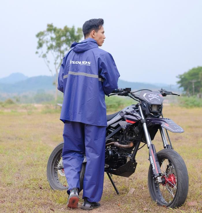 JAS HUJAN MANTEL MOTOR KUALITAS TINGGI PRESS SEALER ANTI REMBES - BLACK CREAM, JUMBO XXL- XXXL