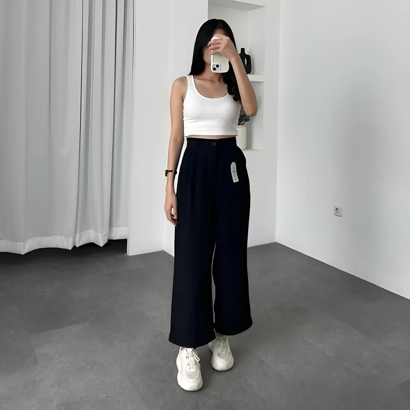 Loose Pants Trousers - Celana Kulot Anti Kusut Premium - Celana Kulot Wanita - Celana Wanita Highwaist - Celana Pan