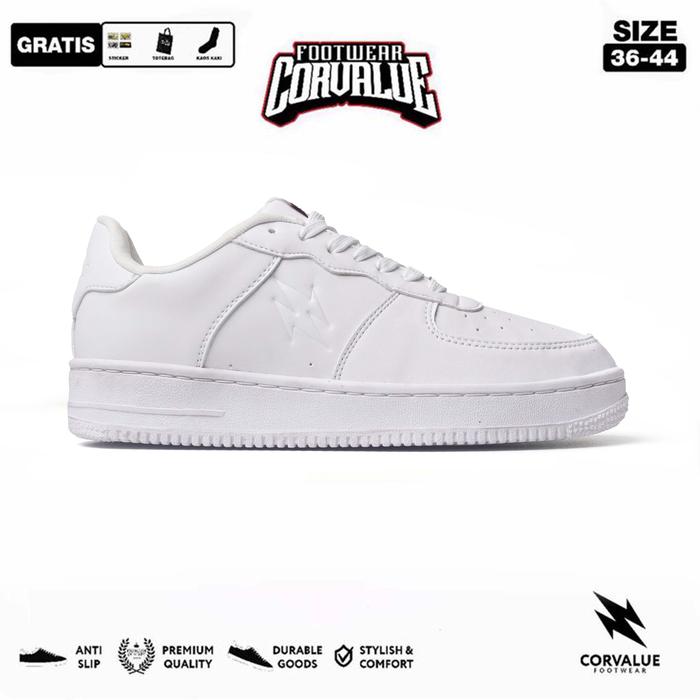 SEPATU CORVALUE - SEPATU SNEAKERS KASUAL PRIA WANITA002 HIRATSUKA FULL WHITE CASUAL SHOES SNEAKERS PUTIH KERJA - 36