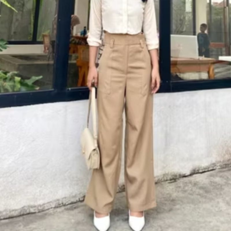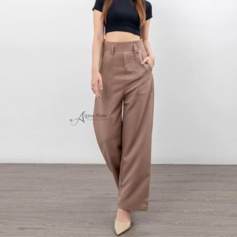 Ayana Diora Pants Highwaist Celana Panjang Wanita Kulot Loose Straight Cut