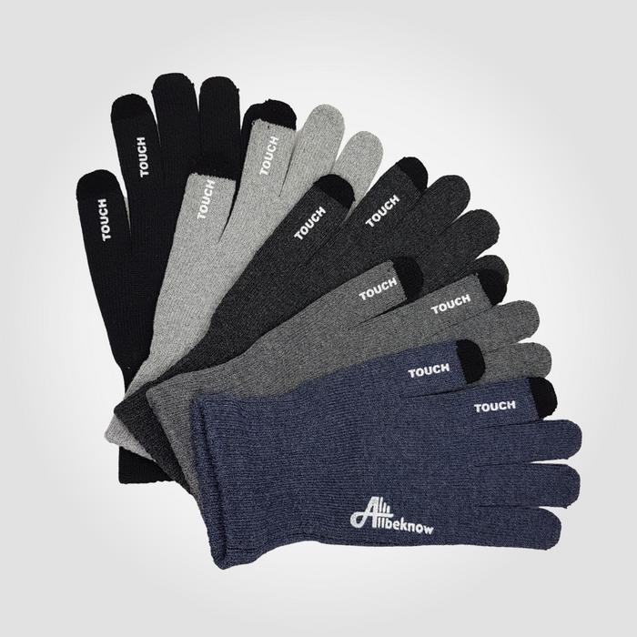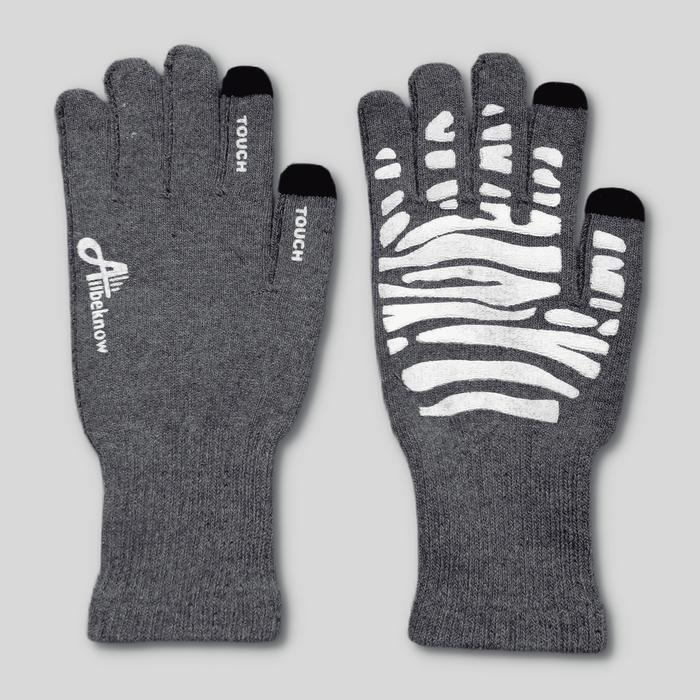 SARUNG TANGAN MOTOR TOUCH SCREEN-KARET ANTI SLIP-GREY- RAJUT - BLACK