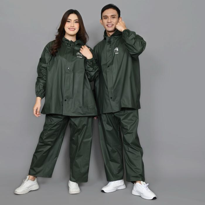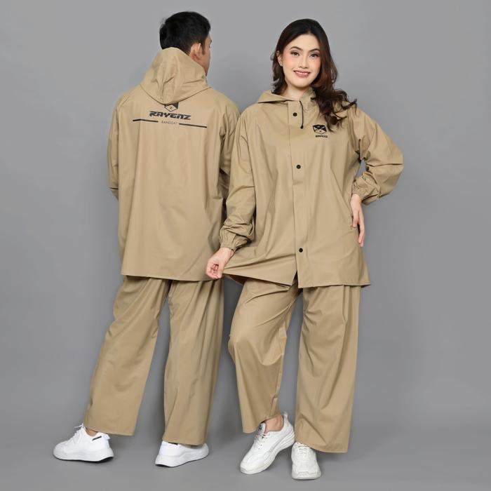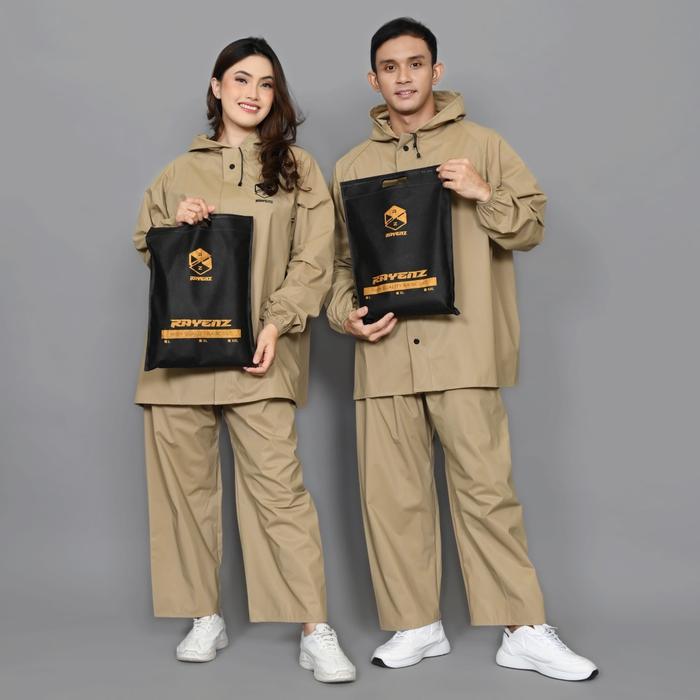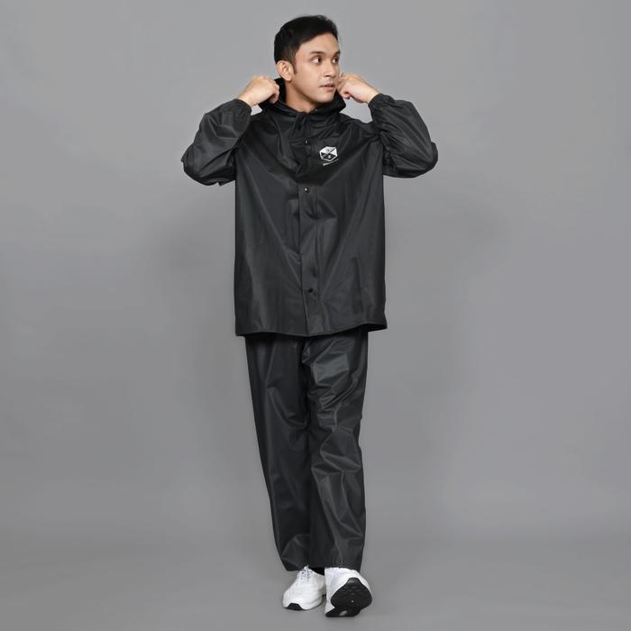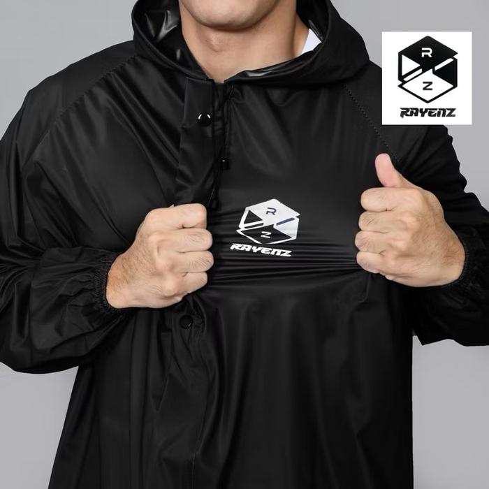 JAS HUJAN, RAINCOAT MANTEL HUJAN PRIA WANITA ORIGINAL BY RAYENZ BAHAN PVC TEBAL ANTI REMBES SETELAN - HITAM, L