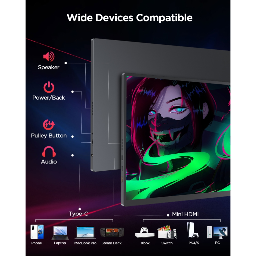UPERFECT Portable Monitor 16inch 2K 120Hz 25601600 External Display LCD Type C HDMI IPS Gaming Monitor for laptop