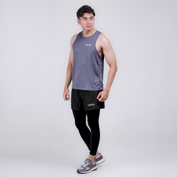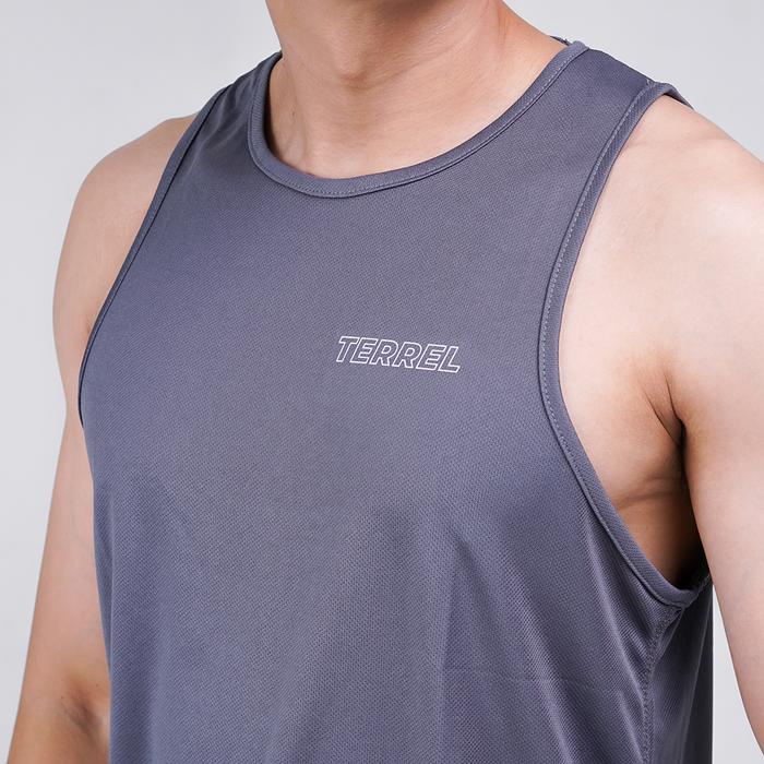 TERREL SPORTSWEAR BASIC TANKTOP GREY SLEEVELESS SINGLET DRY FIT GYM RUNNING PRIA OUTDOOR SPORT PAKAIAN - S