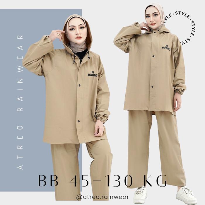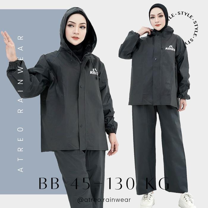 JAS HUJAN JUMBO SETELAN PRIA WANITA ORIGINAL ATREO SIZE L XL XXL 3XL 4XL WATERPROOF PVC - ATREO HITAM, XXXL