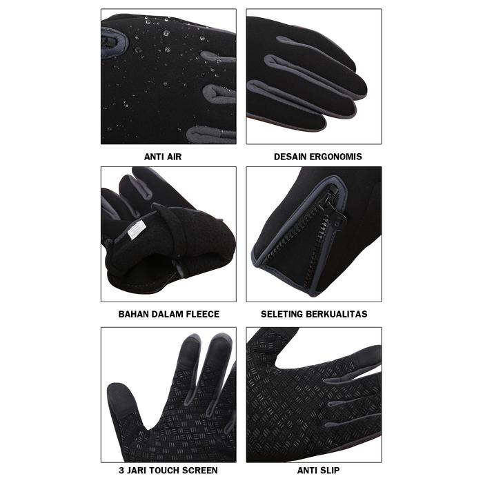 SARUNG TANGAN MOTOR/SEPEDA TOUCH SCREEN GLOVES B-FOREST WATERPROOF - ACTIVE-HITAMABU, M