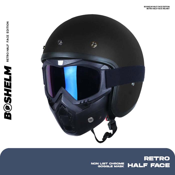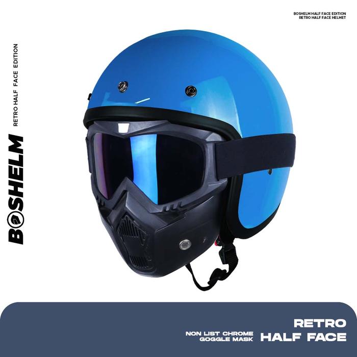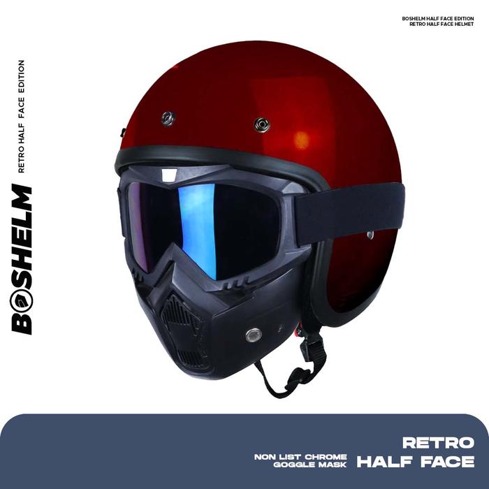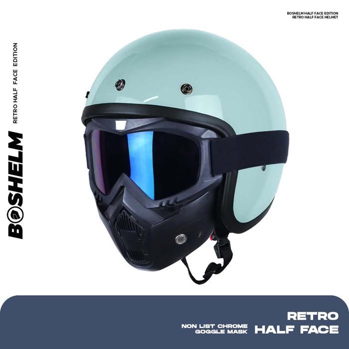 HELM RETRO GOGGLE MASK HELM HALF FACE SNI - CREAM GLOSSY, CLEAR