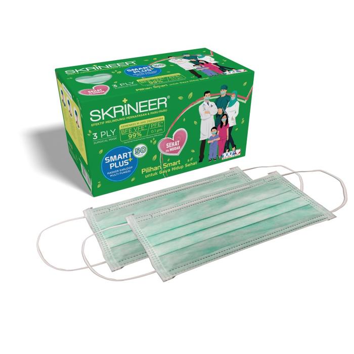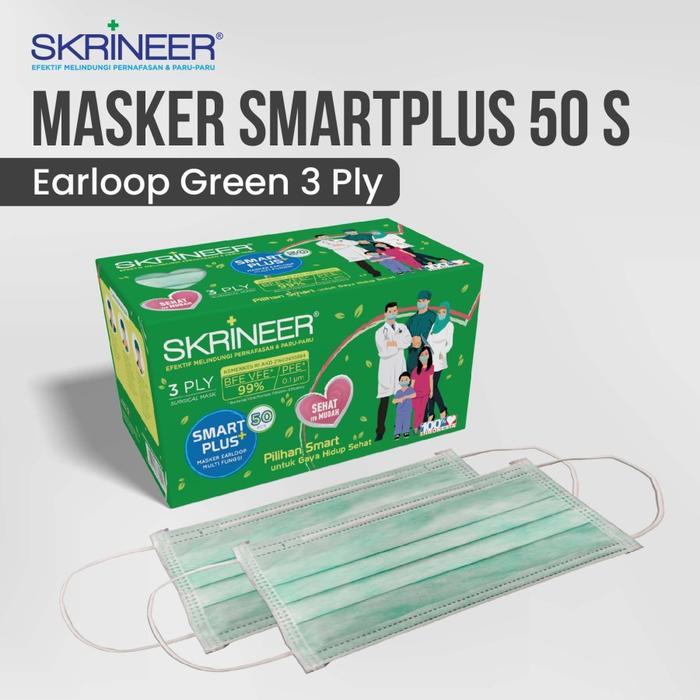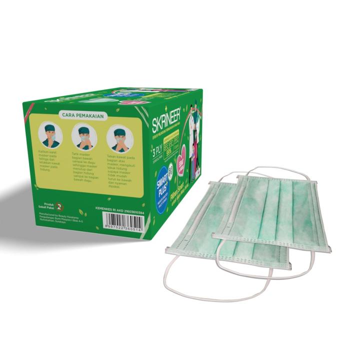 SKRINEER SMART PLUS MASKER 3 PLY EARLOOP GREEN (ISI 50 PCS)