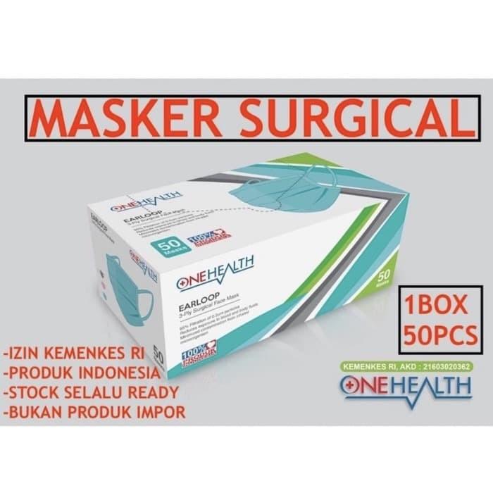 MASKER SURGICAL 3PLY ONE HEALTH 1 BOX ISI 50 PCS - MASKER MEDIS - HIJAU