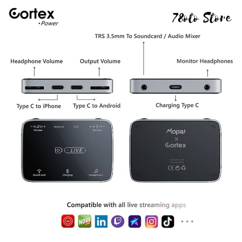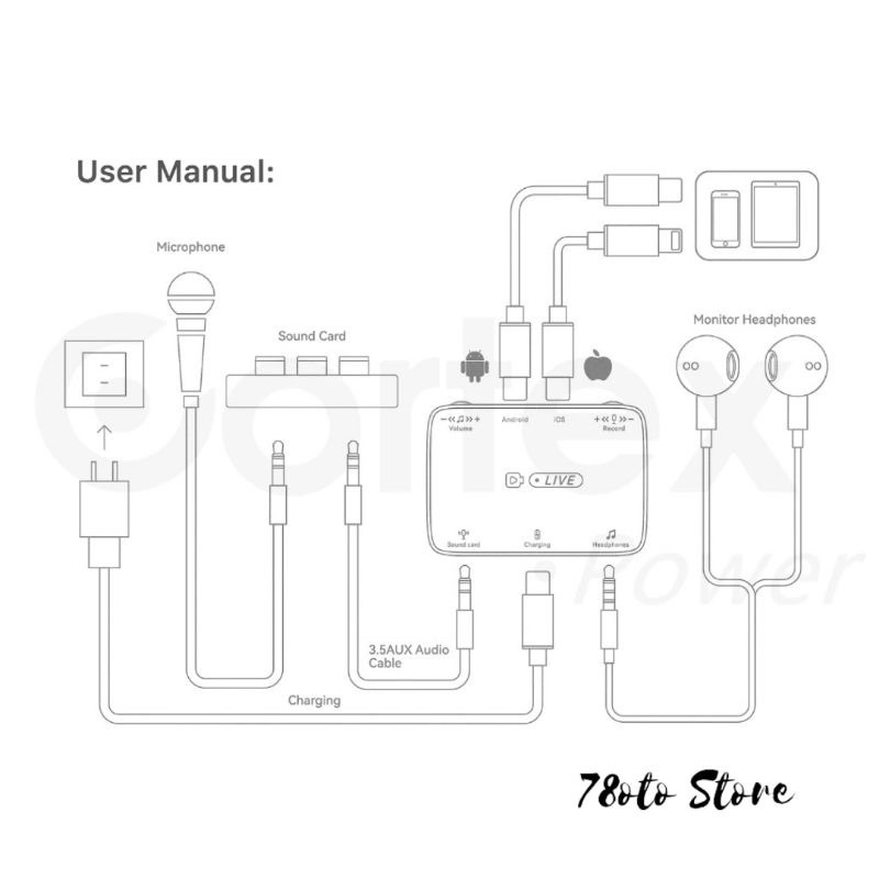 Cortex Power - Stereo LIVE STREAMING DOCK 2 in 1 Android & iPhone Converter Soundcard KT319 STEREO LIVE STREAMING DOCK C
