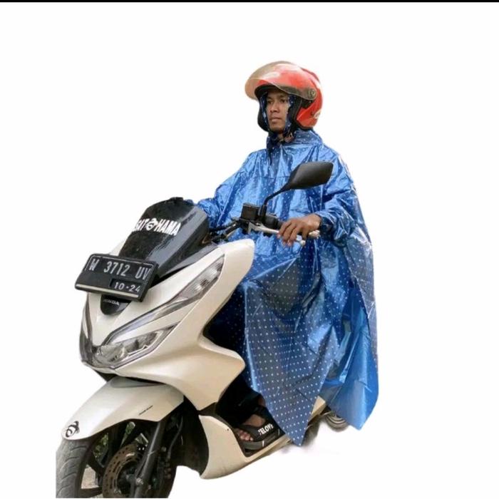 JAS HUJAN PONCO LENGAN POLKADOT - BIRU