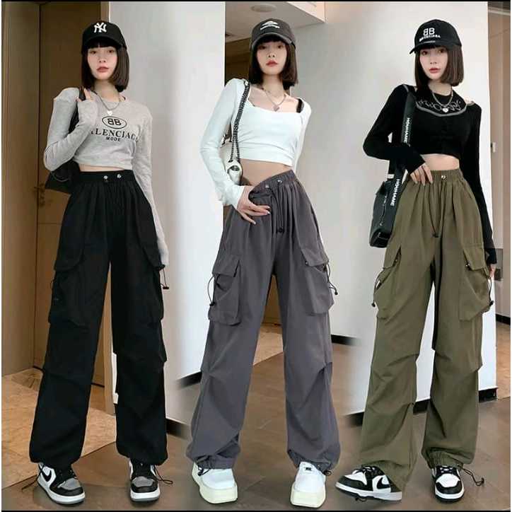 Cargo Pants Wanita Highwaist Loose Pants Korean Style Jumbo - Celana Cargo Wanita Terbaru