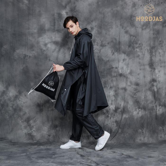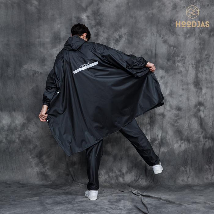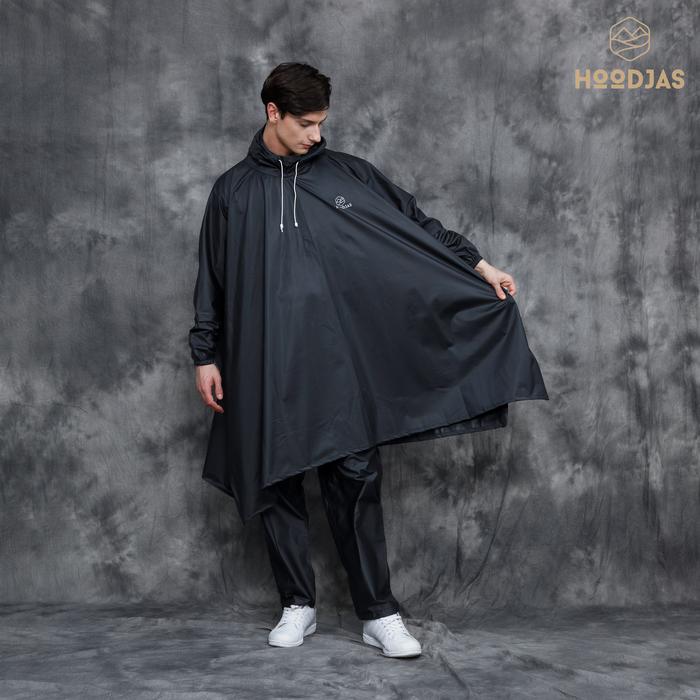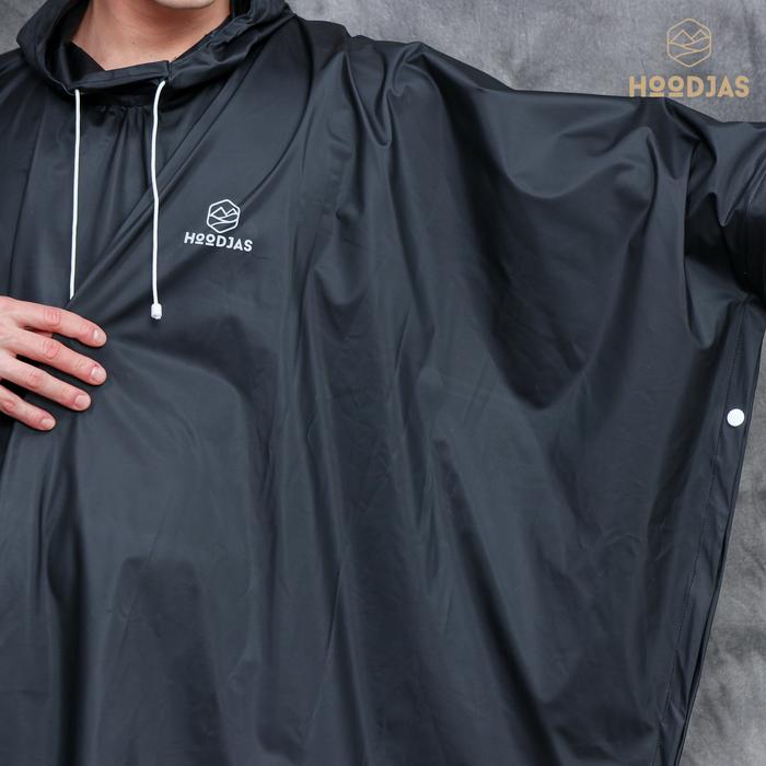 HOODJAS JAS HUJAN PONCO LENGAN KELELAWAR PRIA WANITA ANTI REMBES - HITAM PONCO AJA, XL