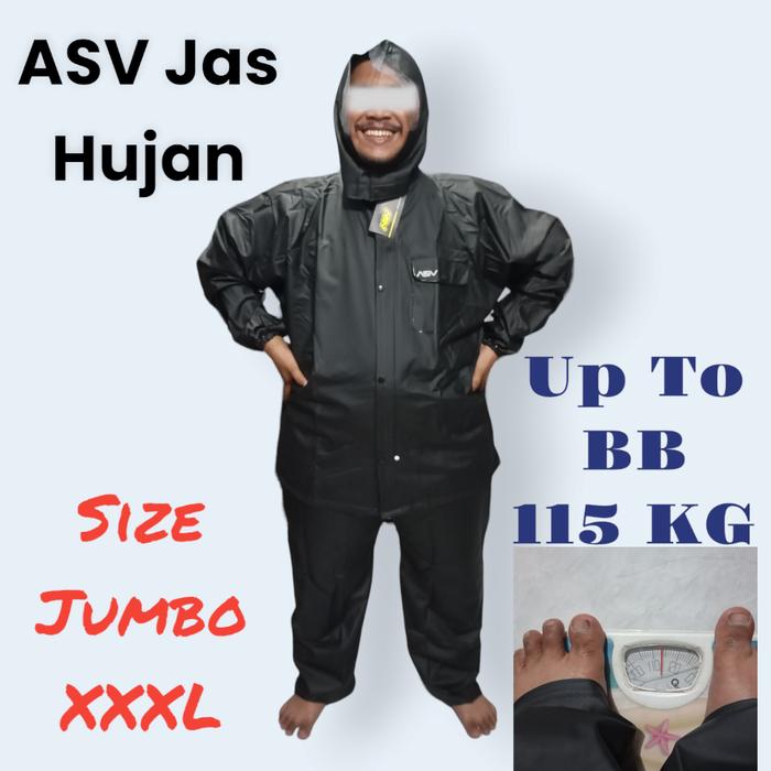 JAS HUJAN FULL PRESS KARET TEBAL ASV ORIGINAL SIZE L XL XXL XXXL JUMBO - HITAM, L