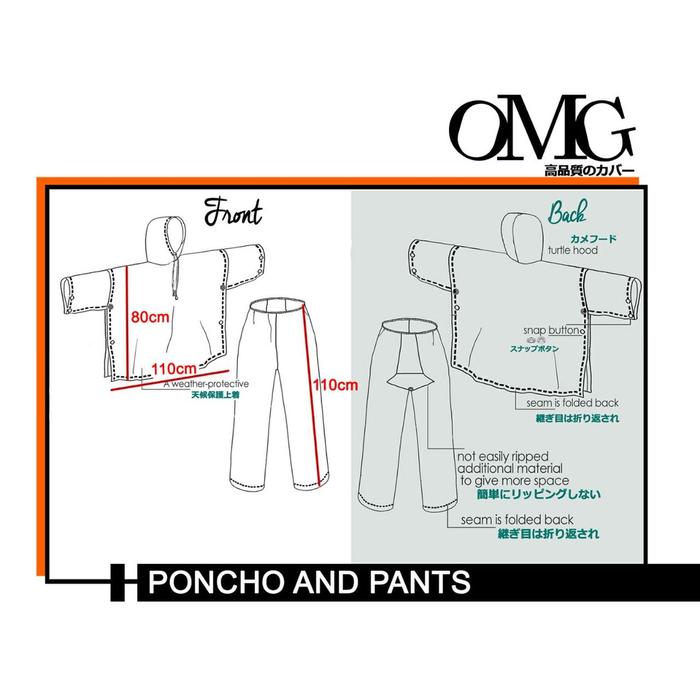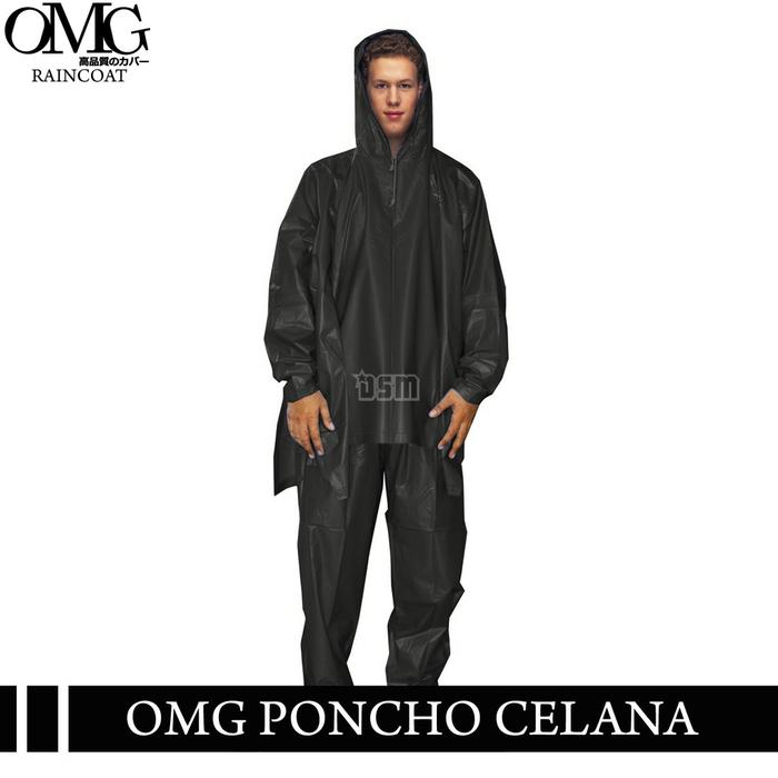 JAS HUJAN SETELAN PONCO LENGAN CELANA PRIA WANITA DEWASA OMG ORIGINAL - HITAM