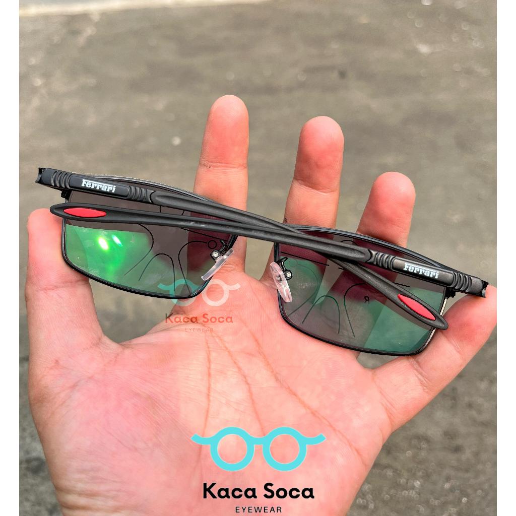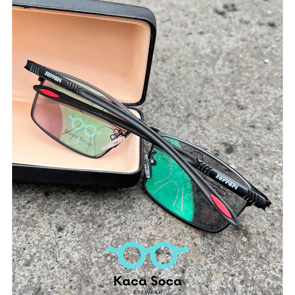 Kacamata Progresif Sporty Pria Kacamata Progresif Photocromic Bisa Untuk Baca Dan Jalan Frame Ferrari Lensa Progresif